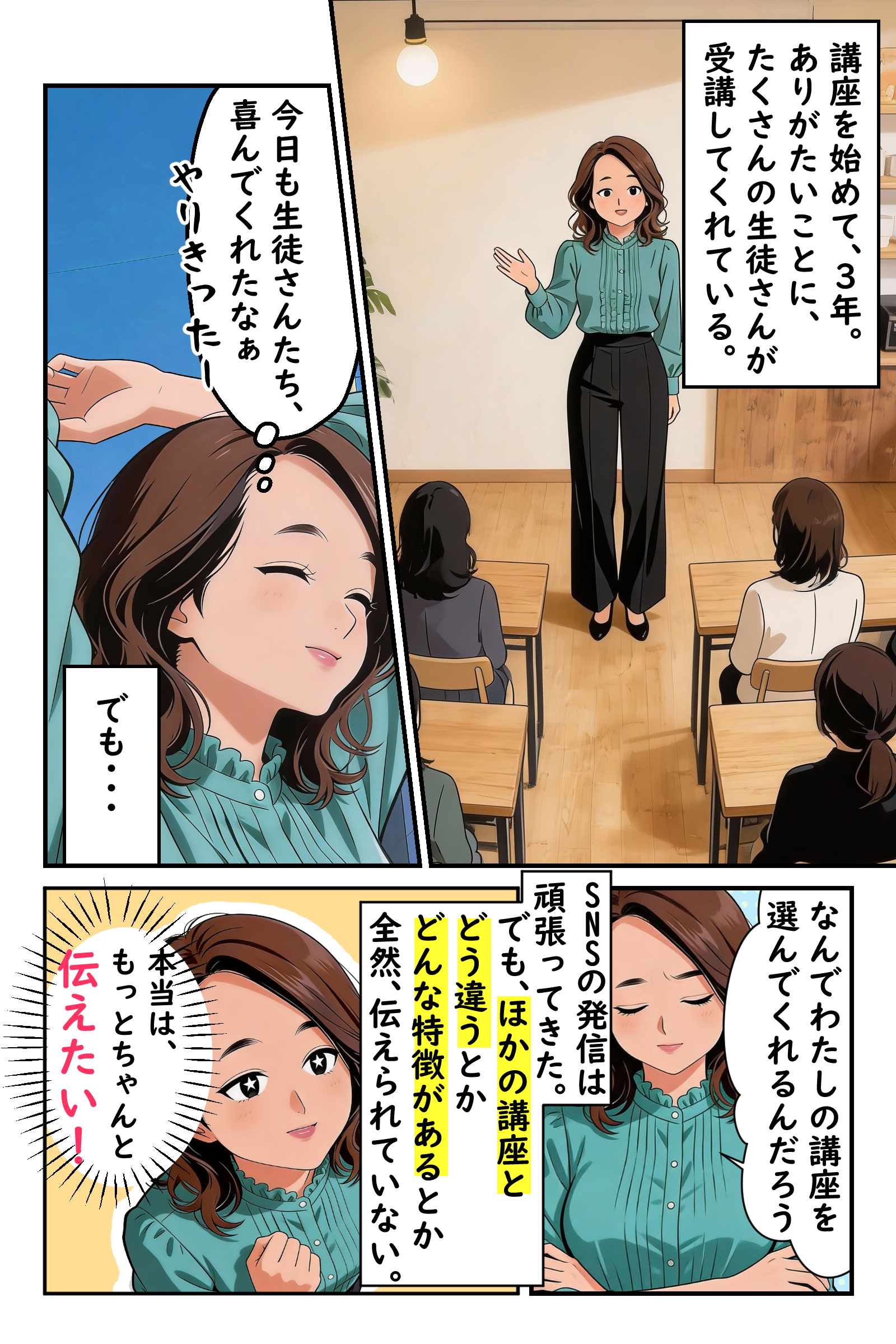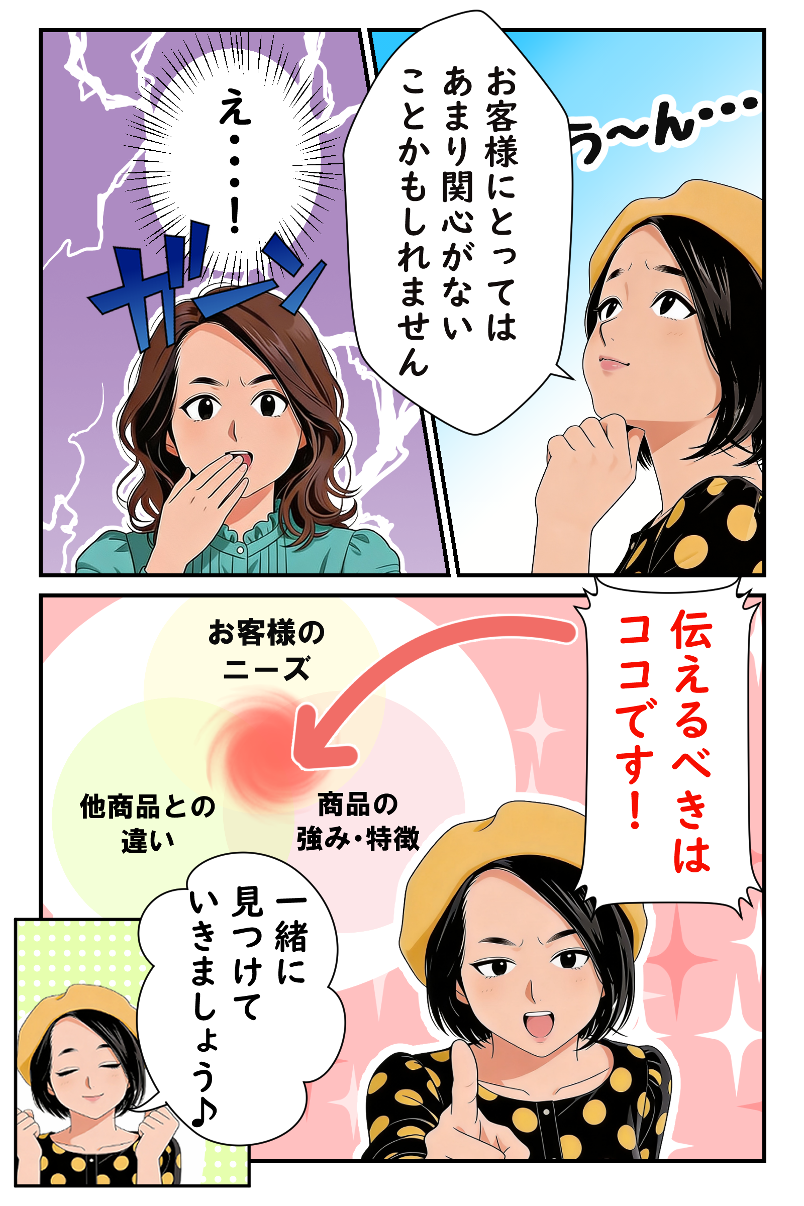 自分の商品のセールスポイントがわからず、自分の表現語彙では言い表せないことが悩みでした。